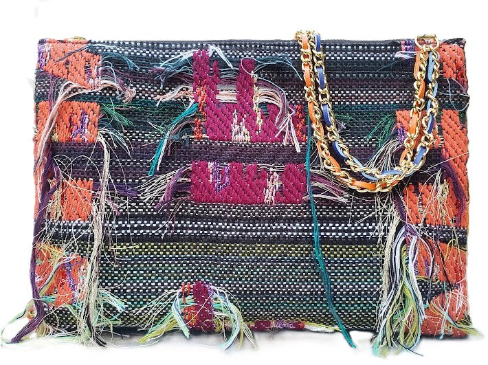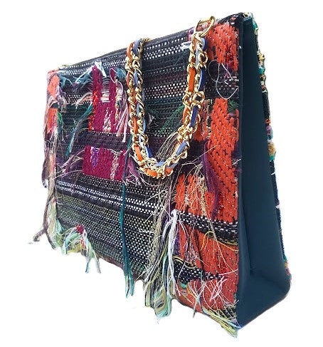Modèle "Le Féminin Pluriel" ( 31 X 21,5 X 6 cm) ce sac à main est conçu à l'image de la pluralité d'être féminine, femme et créatrice. Il conjugue la beauté des tissus Haute Couture à une très belle maroquinerie française. "Signe" de cette richesse intérieure propre à la femme, il vous saura épauler avec élégance dans votre plaisir d'être... Inégalée !