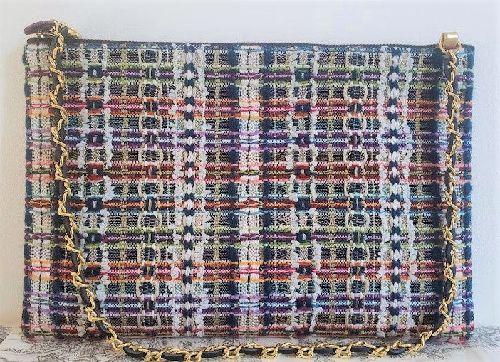 Ce sac pochette unique et poétique est fait avec deux superbes tissus de luxe français, au savoir-faire d'excellence.