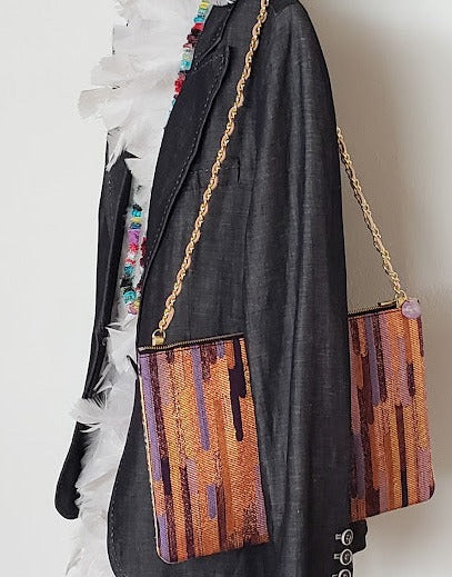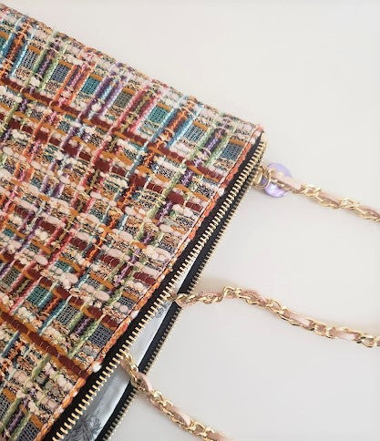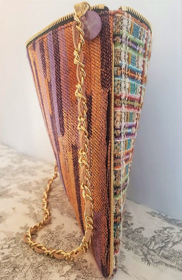 Ce ravissant sac pochette "touche Haute Couture" unique est fait avec deux tissus de luxe français, au savoir-faire d'excellence.